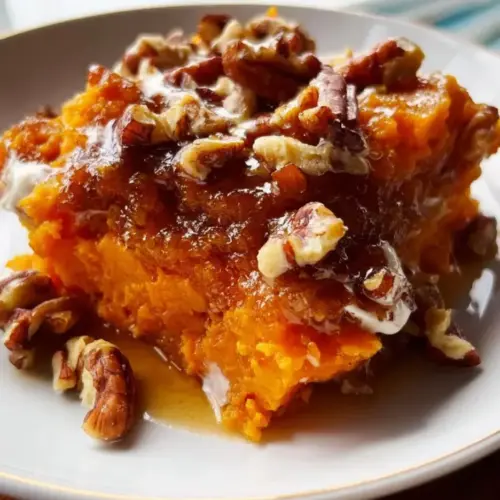 Bourbon Sweet Potato Casserole is a creamy, flavorful dish made with sweet potatoes and a hint of bourbon for added depth, typically topped with marshmallows or pecans.