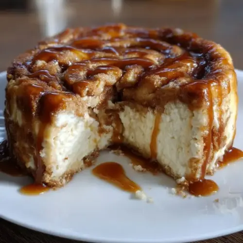 Cinnamon Roll Cheesecake is versatile, and you can easily put your own spin on it. For a seasonal twist, add pumpkin puree and spices during the mixing stage to create a delightful Pumpkin Cinnamon Roll Cheesecake. If you prefer a fruity touch, you can fold in fresh apples or peaches into the cheesecake batter for a fruity explosion that complements the cinnamon. For chocolate lovers, consider adding cocoa powder to the batter or swirling in chocolate syrup before baking. You can also turn this dessert into bite-sized treats by making mini cheesecakes in a muffin tin, perfect for parties or gatherings. For a nutty flavor, sprinkle chopped pecans or walnuts on top or into the batter for added crunch. Lastly, for those who love a tangy contrast, add a swirl of raspberry or strawberry sauce atop your cheesecake before serving.