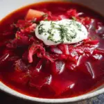 Classic Borscht is a vibrant, hearty soup celebrated for its rich, earthy flavor and striking deep red color, stemming primarily from its star ingredient: beets. This traditional dish finds its roots in Eastern European cuisine and has been passed down through generations. Its comforting blend of veggies and broth makes it a favorite during colder months, but its appeal extends year-round. Enjoyed warm, often finished with a dollop of sour cream and a sprinkle of fresh dill, Classic Borscht is not just a meal; it’s a celebration of culinary heritage and communal dining that warms both the body and soul.