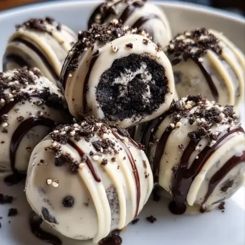 Cookies and cream Oreo protein balls are no-bake snacks made with protein powder, crushed cookies, and nut butter, providing a tasty and nutritious treat.