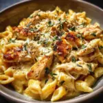Serving Creamy Chicken Pasta is part of the magic of this dish. You have several options to enhance your meal. Consider plating it in deep bowls, allowing the creamy sauce to pool perfectly around the pasta. You can add a sprinkle of fresh herbs like parsley or basil as a garnish; this not only looks appealing but also adds a nice burst of flavor. For a crunchy texture contrast, serve it with a side of garlic bread or a fresh salad. This meal is perfect for family dinners and also makes for great leftovers the next day.