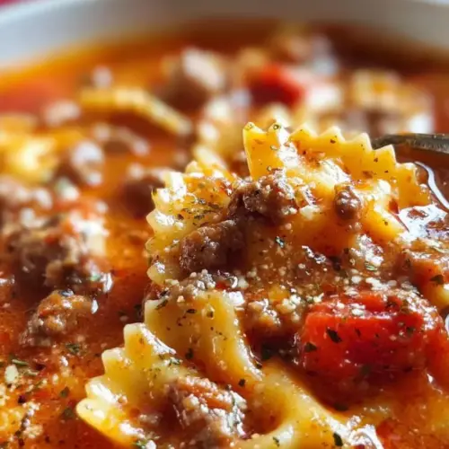 This creamy lasagna soup with sausage and ground beef is loved for its unique blend of flavors and textures. The combination of beef and sausage creates a robust base, while the creamy tomato broth adds warmth and richness. It’s a one-pot meal that allows you to enjoy all the beloved flavors of lasagna without the time-consuming layers. You can easily adapt this recipe to feed your family on a busy weeknight or impress guests at a dinner party. With its comforting aroma and rich taste, this soup feels like a warm hug in a bowl, making it the perfect comfort food for chilly nights or when you just need something deliciously satisfying.