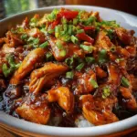 - Serve the shredded bourbon chicken over rice, noodles, or quinoa, garnished with chopped green onions.