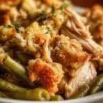 Crockpot Chicken Stuffing Green Beans is a slow-cooked meal that combines chicken breasts, stuffing mix, and green beans. It’s an easy, one-pot comfort food that’s perfect for busy nights.