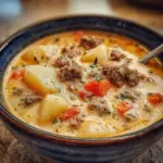 A hearty and comforting soup with ground beef, tender potatoes, and creamy ingredients, perfect for busy days and chilly nights.
