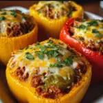 These stuffed peppers are perfect on their own, but pairing them with a simple side can enhance the dining experience. A light salad with mixed greens, cucumbers, and a drizzle of olive oil adds freshness and contrasts nicely with the richness of the stuffed peppers. Alternatively, serve them alongside some crusty bread or garlic bread to soak up any juices.