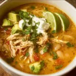 Dairy Free White Chicken Chili is a savory, creamy dish made with chicken, beans, spices, and coconut milk, perfect for those avoiding dairy.