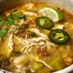 Green Chicken Chili Soup is a comforting dish combining shredded chicken, veggies, salsa verde, and spices, resulting in a deliciously hearty and nutritious meal.