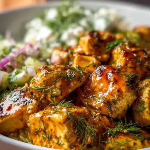 The beauty of High Protein Mediterranean Lemon-Dill Chicken Bowls lies in their versatility. You can easily adjust the ingredients to suit your taste or dietary preferences. For a vegetarian version, substitute the chicken with grilled chickpeas or roasted tofu, marinated in the same lemon-dill mixture. If you prefer a heartier grain, try using brown rice or farro instead of quinoa for a different flavor and texture. You can also mix in various legumes like black beans or kidney beans, adding extra protein and fiber. Add feta cheese on top for a creamy contrast or skip it altogether for a dairy-free option. Don’t hesitate to try out different dressings as well, such as a tahini sauce or a yogurt-based dressing, to give a new twist to the flavors. Seasonal veggies are also wonderful. Incorporate roasted vegetables like eggplant or bell peppers for a smokier flavor profile or even try adding olives for an extra Mediterranean touch.