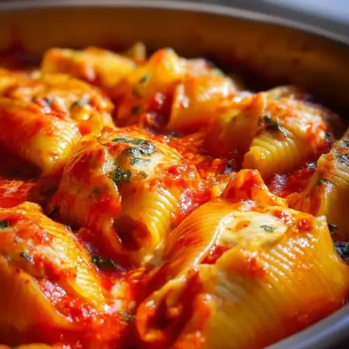 Delicious pasta shells filled with creamy cottage cheese and rich marinara sauce, perfect for family dinners or gatherings.