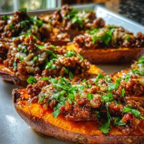 To store leftover Hot Honey Ground Beef & Roasted Sweet Potato Boats, allow them to cool to room temperature first. Transfer them to an airtight container and refrigerate. They will last for up to 3 days in the refrigerator without losing quality. If you want to keep them for a longer period, consider freezing them. Wrap each filled sweet potato boat tightly in plastic wrap and then place it in a freezer-safe container or bag. They can keep well in the freezer for up to 2 months. When you’re ready to enjoy them again, thaw in the refrigerator overnight and reheat in the oven at 350°F (175°C) until heated through, ensuring the cheese melts and the flavors come back to life.