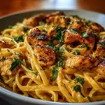 To store your leftovers, let the Cowboy Butter Chicken Linguine cool down to room temperature before transferring it to an airtight container. This dish can be stored in the refrigerator for up to 3 days. When you’re ready to enjoy it again, simply reheat it in a skillet over medium heat. If the sauce seems a bit too thick, add a splash of chicken broth or reserved pasta water to bring it back to that creamy consistency. Avoid freezing the pasta dish, as the cream may change texture when thawed.