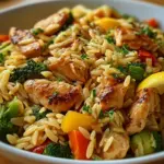 Lemon Chicken & Vegetable Orzo Stir Fry is a delightful dish that brings together tender chicken, vibrant vegetables, and perfectly cooked orzo pasta. The zesty lemon juice adds a refreshing twist, making it a perfect choice for a healthy weeknight meal. This one-pan wonder is not only quick to prepare but also packed with flavor, ensuring it becomes a favorite in your household.