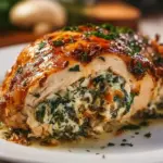 Mediterranean Stuffed Chicken Breast is a dish where chicken breasts are filled with a mixture of sun-dried tomatoes, spinach, feta cheese, and herbs before baking until juicy and flavorful.