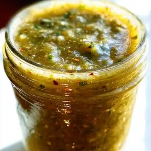 A vibrant, tangy sauce made from roasted tomatillos and jalapeños, enhanced with fresh cilantro and lime. Perfect for tacos, grilled meats, or as a zesty dip.