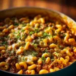Once the macaroni is cooked to perfection, reduce the heat to low and stir in the shredded cheddar cheese. As the cheese melts, it will create a creamy, rich sauce that coats the pasta and meat. It’s the kind of dish that envelops you in comfort with every spoonful. Serve it warm, and if you want to elevate the presentation a bit, consider garnishing with extra cheese or fresh herbs.