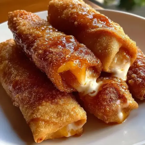 This twist on a traditional dessert offers numerous reasons to love it. First, the combination of juicy peaches and warm spices evokes comforting nostalgia, making every bite feel like a trip back to sweet summer days. The crispy exterior contrasts wonderfully with the soft, sweet filling, creating a mouth-watering experience. Additionally, these egg rolls are customizable; you can adjust the sweetness or spices to suit your taste, making them versatile for any palate. Plus, they’re easy to prepare, allowing you to impress your friends and family without spending hours in the kitchen. Finally, don’t forget the dipping sauce options—you can use whipped cream, caramel, or even a scoop of vanilla ice cream for an extra indulgent treat.
