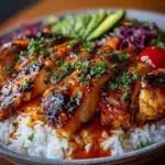 Spicy Maple Chicken and Coconut Rice is a dish that perfectly harmonizes sweet, spicy, and savory flavors. Combining tender chicken pieces marinated in a rich maple and sriracha blend, served over fragrant coconut rice, this recipe offers you a delightful journey of taste and aroma. The use of fresh ingredients and garnishes adds a vibrant touch, ensuring that every bite is not just a meal, but a celebration on your plate.