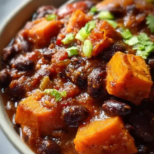 For those who prefer a creamy chili, you can swirl in some coconut milk during the cooking process. This addition not only enriches the dish but also imparts a subtle sweetness that complements the sweet potatoes beautifully. You can even make a one-pot meal by serving the chili over quinoa for an extra protein boost, or you could blend in some nutritional yeast for a cheesy flavor without the dairy.