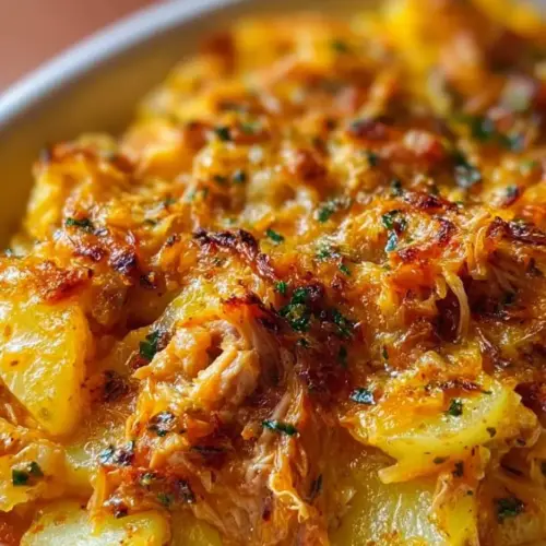 Tuna Potato Bake is a creamy, cheesy casserole that combines layers of tender potatoes, canned tuna, and vegetables, baked to perfection.